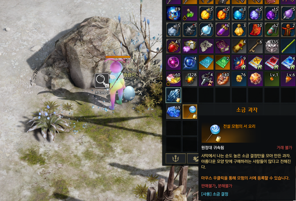 더러운 소금웜 바로위에서 모험의서 요리 재료 소금 웜 똥을 얻어 제작할 수 있습니다.