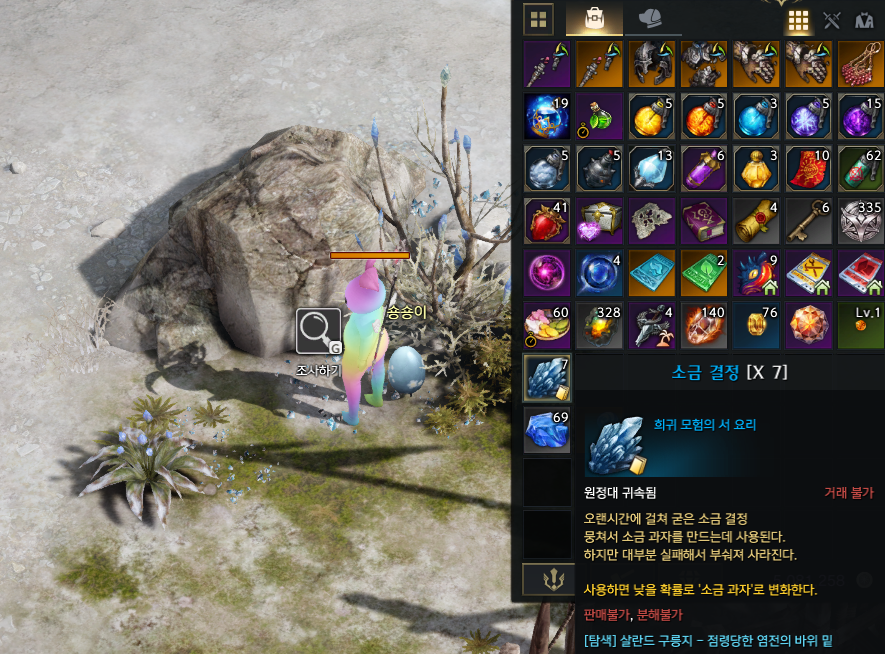 살란드 북쪽에서 얻을 수 있는 소금벌레 소금구이도 조사만 하면 바로 등록가능합니다.