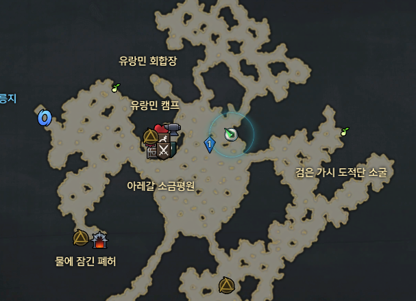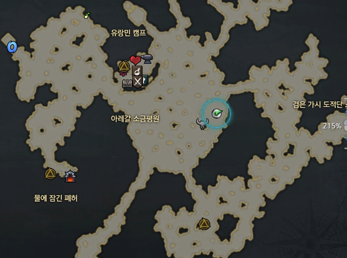 위쪽에서 모코코를 먹고 아래쪽에 구석가는 길 입구에 소금 사막 도적단 투사를 만날 수 있습니다.