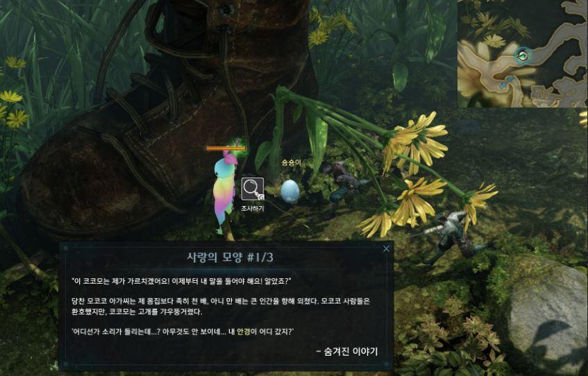 모코코 마을에서 2/3 진행할때 위 사진의 위치에서만 조사해서 제한시간 김