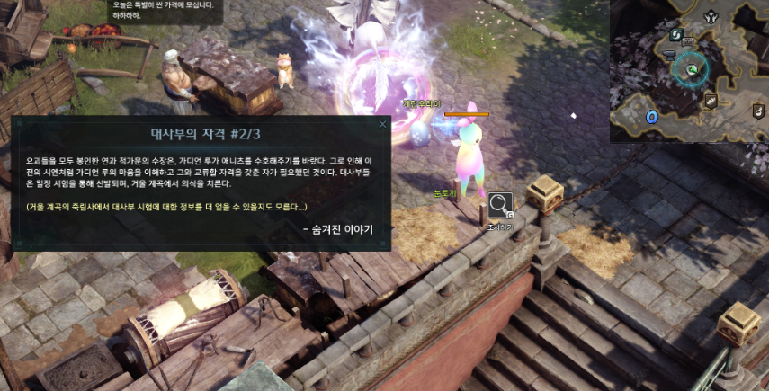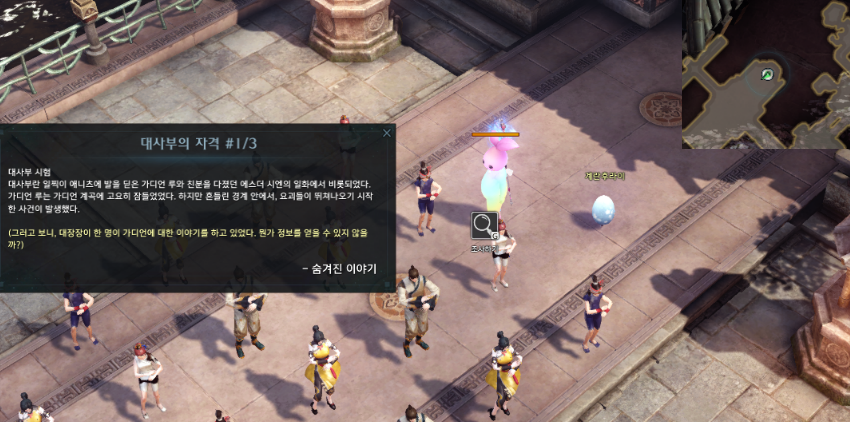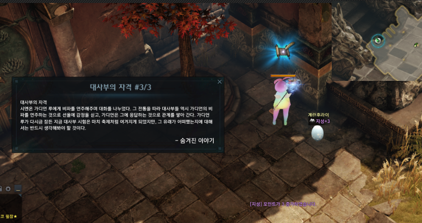 숨겨진 이야기인 대사부의 자격 #3/3은 거울 계곡의 왼쪽아래 스퀘어홀을 타고 가셔서