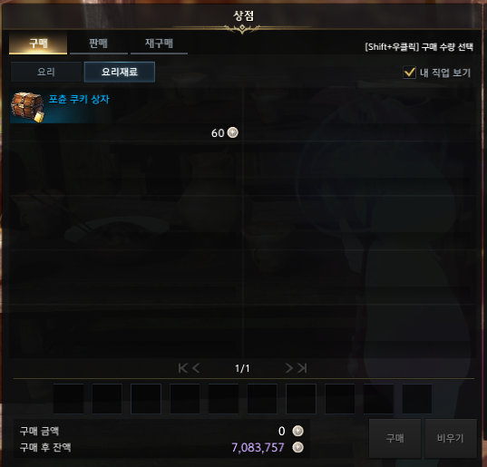 요리재료 탭에 포츈쿠키상자를 구입해서