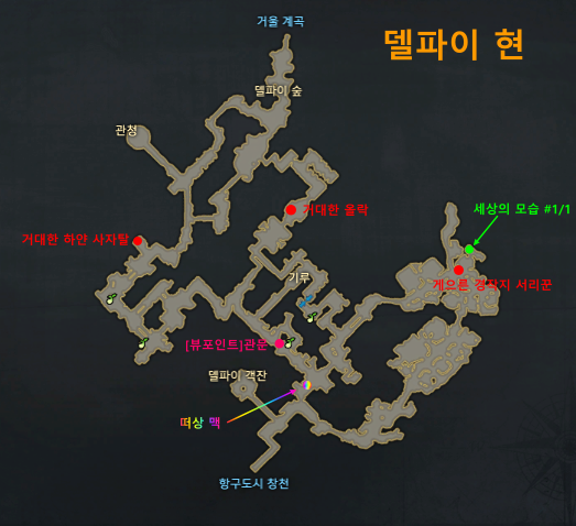 델파이현은 몬스터 몇마리와, 뷰포인트 한개, 숨겨진이야기 한개뿐이니 빠르게 넘어갑니다.